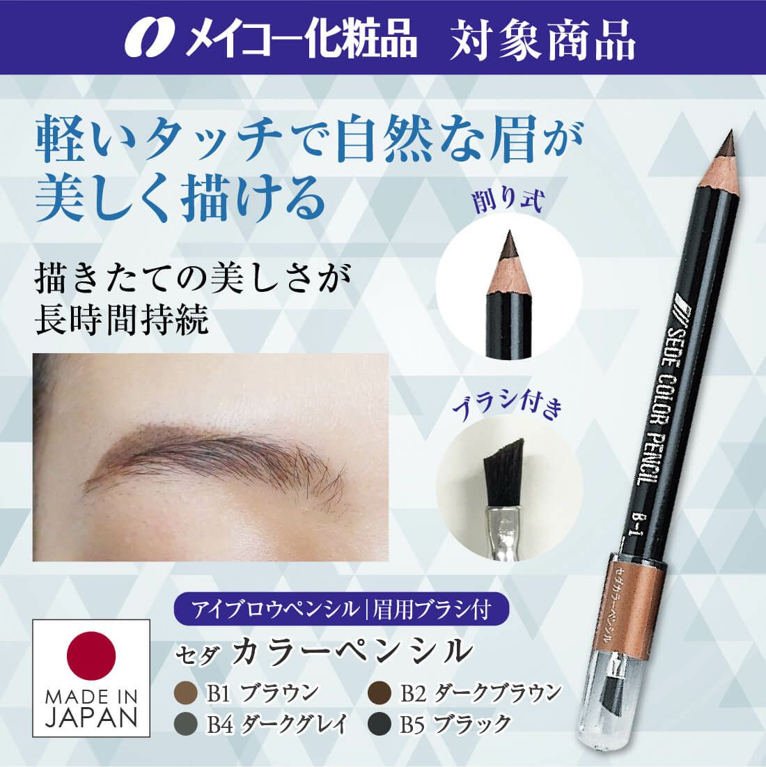 ほどよい硬さで描きやすいアイブロウペンシル。カートリッジ式で削る手間不要。