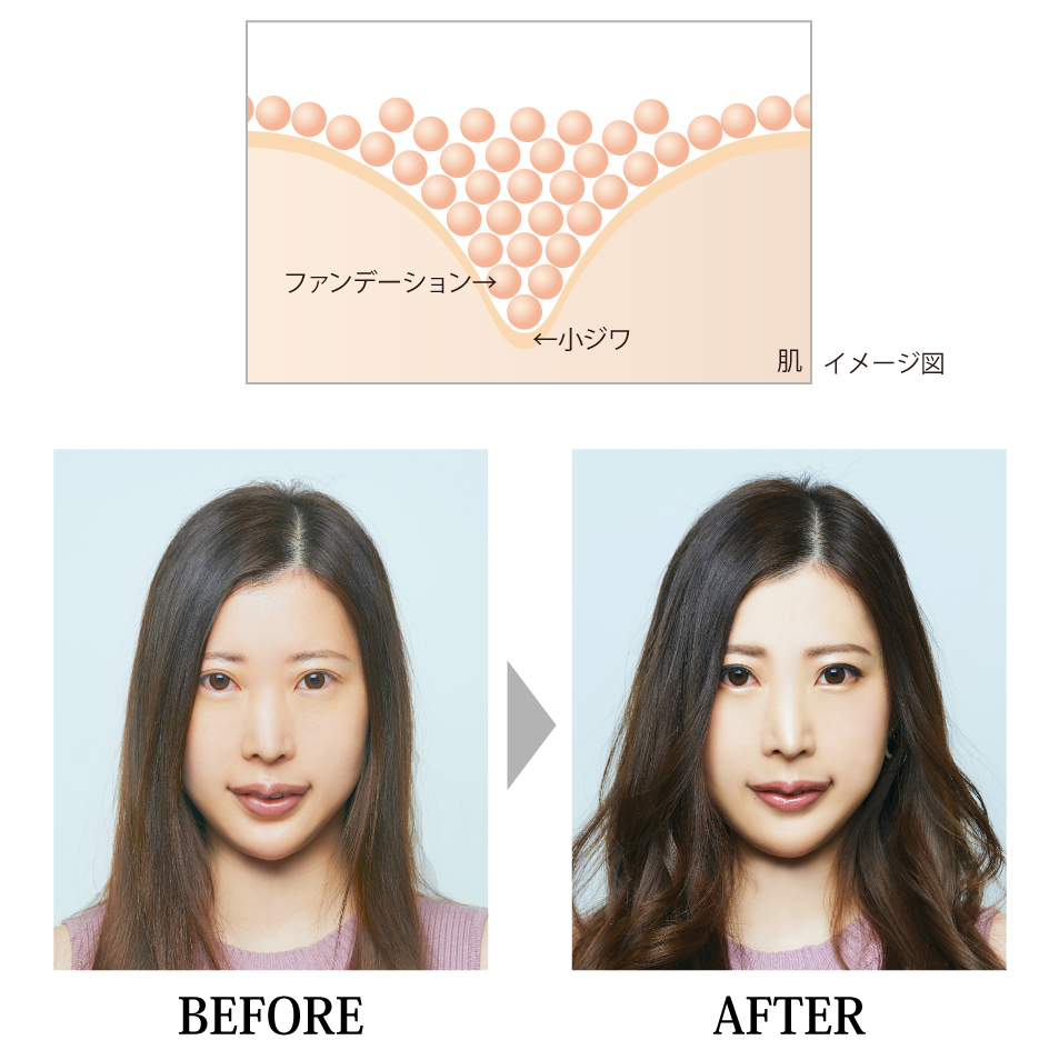 素肌のくすみや色むら、凹凸を均一にカバーします。