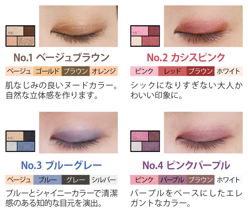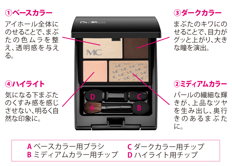 ①〜④の順に塗り重ねるだけの簡単アイカラー