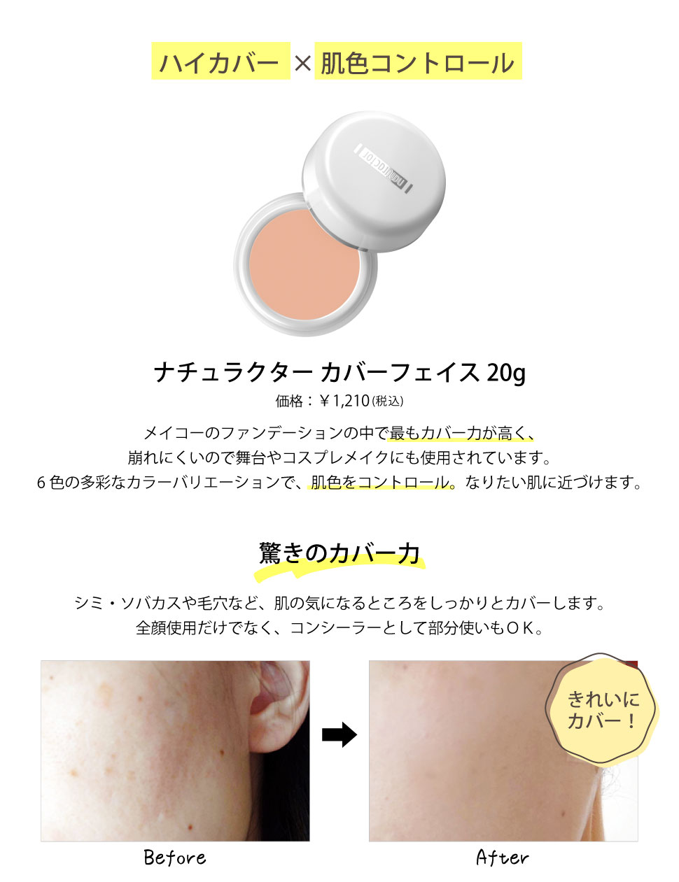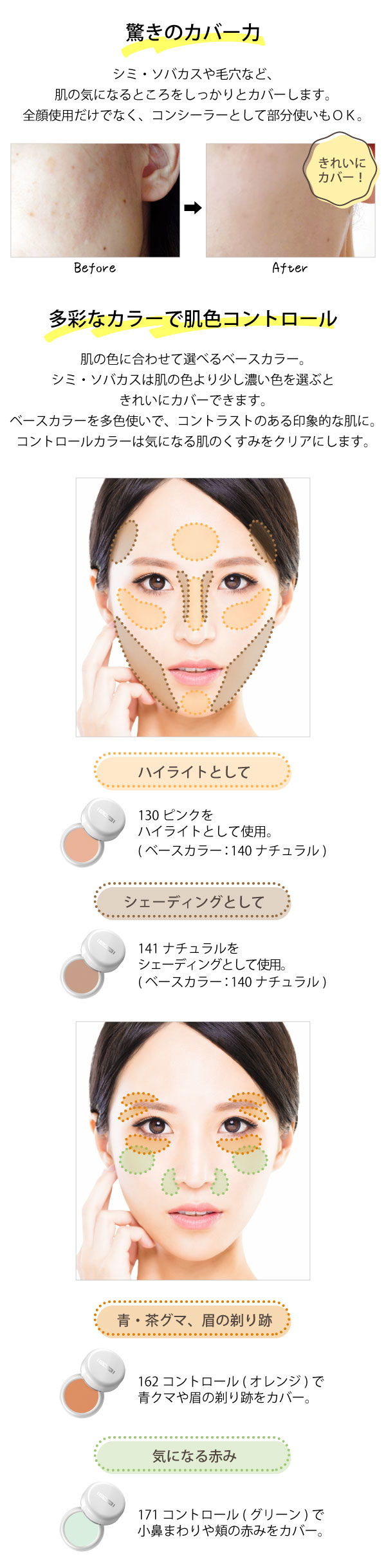 舞台化粧用としても重宝されるほどカバー力が高い。
