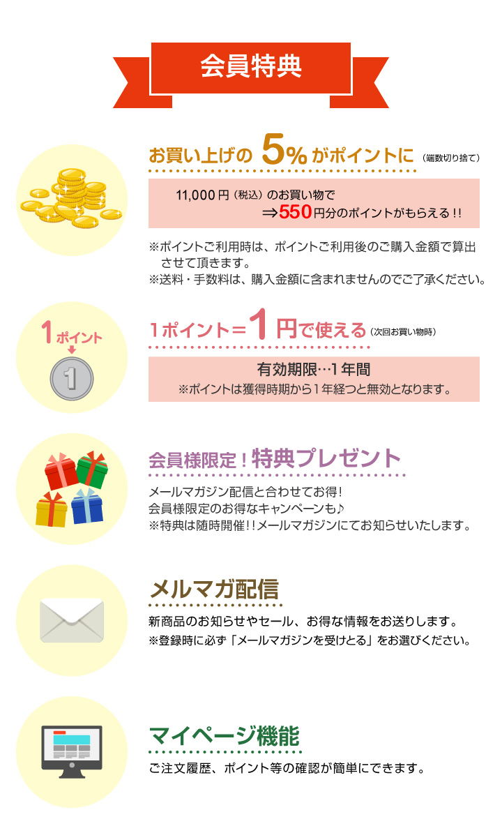 ※ご登録後5年以上ご購入歴がない新規会員様については、会員情報を削除させて頂くことがございます。